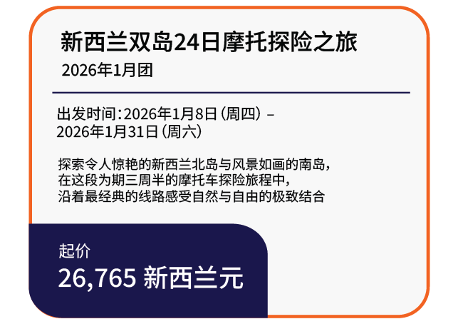 精心设计的路线覆盖新西兰著名的湖泊、火山、森林和海岸线,行程结合骑行乐趣与观光休闲,适合不同骑行水平的骑士。